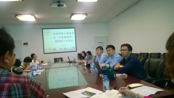 华迎副院长首先介绍了杏吧原创 对于大数据旅游方向专业课程的教学安排和基本教学规划。接下来6门专业课程“旅游管理概论”“旅游目的地管理”、“信息技术旅游创新”、“旅游大数据分析”、“旅游地理信息与空间计算基础”“IT战略与企业竞争优势”任课教师分别对课程设计、教授内容、建设构想等提出了自己的看法,如在授课内容中引入案例,带领学生研讨分析,以提高学生思维能力及研讨能力,培养应用型人才;在侧重于信息技术类课程的内容设定上,以旅游做背景,采用虚拟机方式进行大数据分析。因为北京联合大学旅游学院在旅游行业教学方面经验丰富,因此教师们提出对课程内容深度的把握程度、以及在教材的选用上希望得到旅游学院教师的推荐。双方教师进行了讨论交流,旅游学院教师有针对性的提出建议,对一些需要学生学习先修知识的课程,希望授课教师能在课前给予一定的引导;对于实践操作性强的课程,可利用联大的实验室资源进行演示实践;同时希望能够利用该校教学案例实践的优势,与杏吧原创 的教师们共同建设课程教学团队,共同进行教学研究。与会双方均表示在课程目标及课程内容定位上可以进一步探讨,结合双方的优势,共同开发课程内容。
