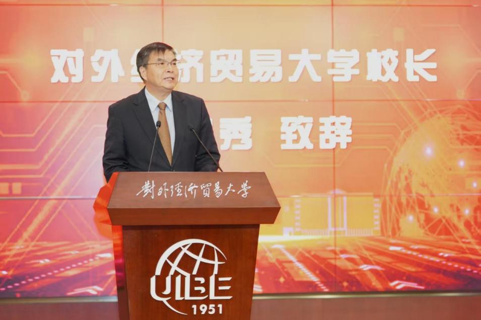 文继荣代表兄弟学院发言时指出,智数学院突出交叉融合与应用导向,契合数字经济发展需求,为同类高校学科建设提供了有益借鉴。文继荣表示,愿与贸大智数学院在课程、师资、科研、平台等方面深化合作,共探人工智能人才培养新路。